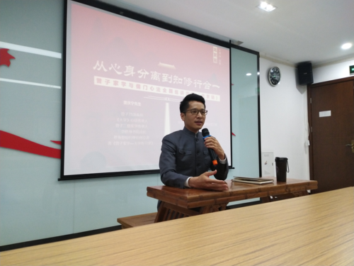 2021年4月28日晚,曾子家学传人曾庆宁先生弟子朱瑞涛老师来到中原郑州讲学,主题为“现代人的生命心法 · 从心身分离到知修行合一”。 天下之本在国,国之本在家,家之本在身。在我们物欲驱动焦虑横流的当下,现代人生机提升的重要性和迫切性尤为突出,修身是提升生机的根本。 “大学之道,在明明德,在亲民,在止于至善”,以《大学》为蓝本的曾子圣贤家学,是我们老祖宗的智慧,朱瑞涛老师强调。